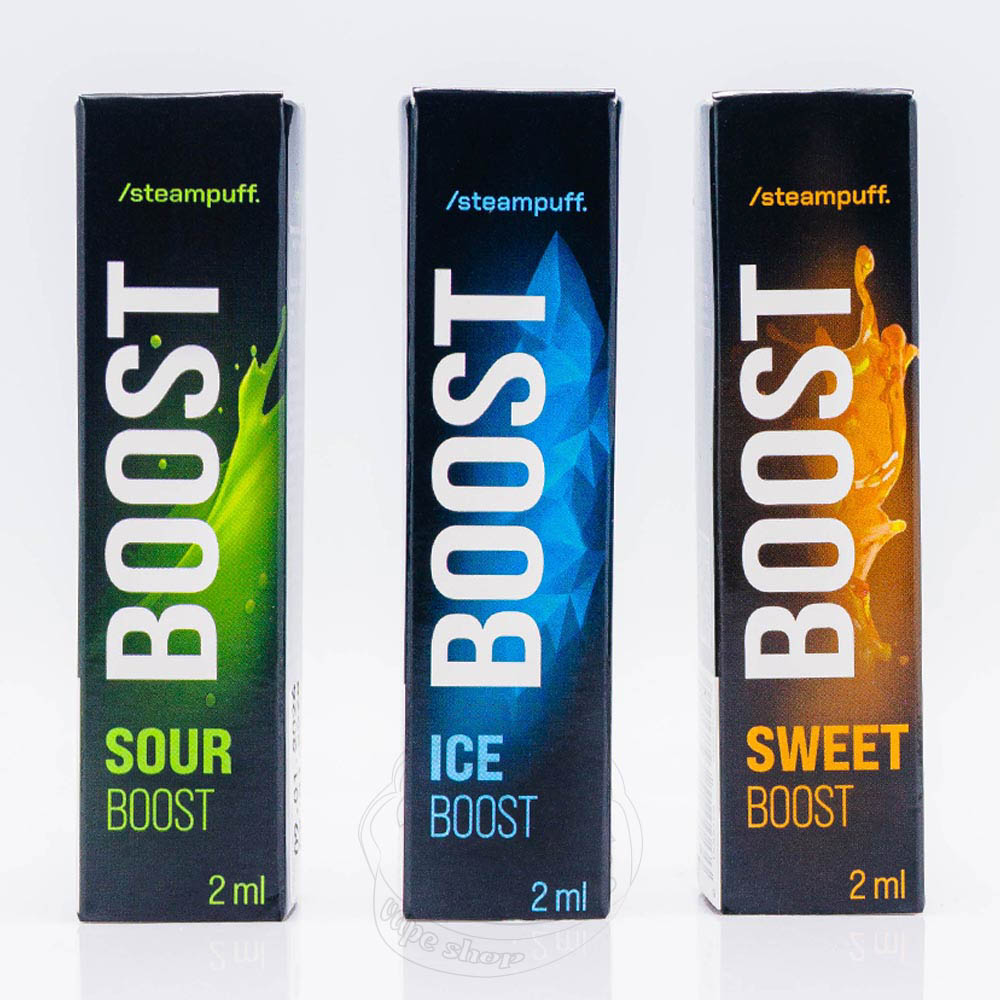 Ароматизатор Steampuff Boost 2ml - це спеціальні концентровані ароматизатори, підсилювачі смаку рідин для багаторазових електронних сигарет від компанії Steampuff. Створені для підкреслення та доповнення оригінальних ароматизаторів, або ж для корекції та балансування інших акцентних елементів смаку.