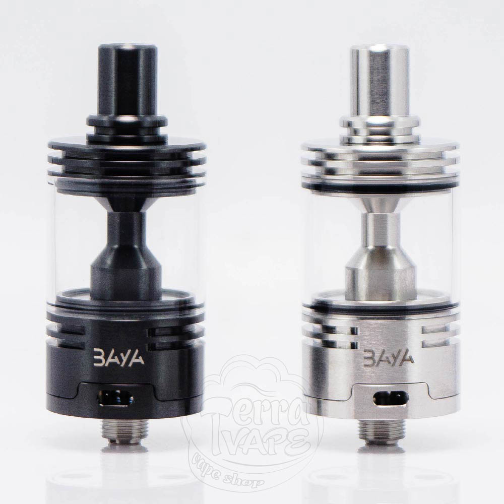 BAYA MTL RTA - это клон обслуживаемого бака под названием «Baya», разработанный под MTL-затяжку. Диаметр базы составляет 22мм, а рассчитан он на установку одной спирали. Заправка в баке нижняя, как и обдув, который регулируется благодаря сменным жиклерам, с которыми комплектуется. Вмещает в себя до 4.2мл жидкости, а дрип-тип у него 510-й и съемный.