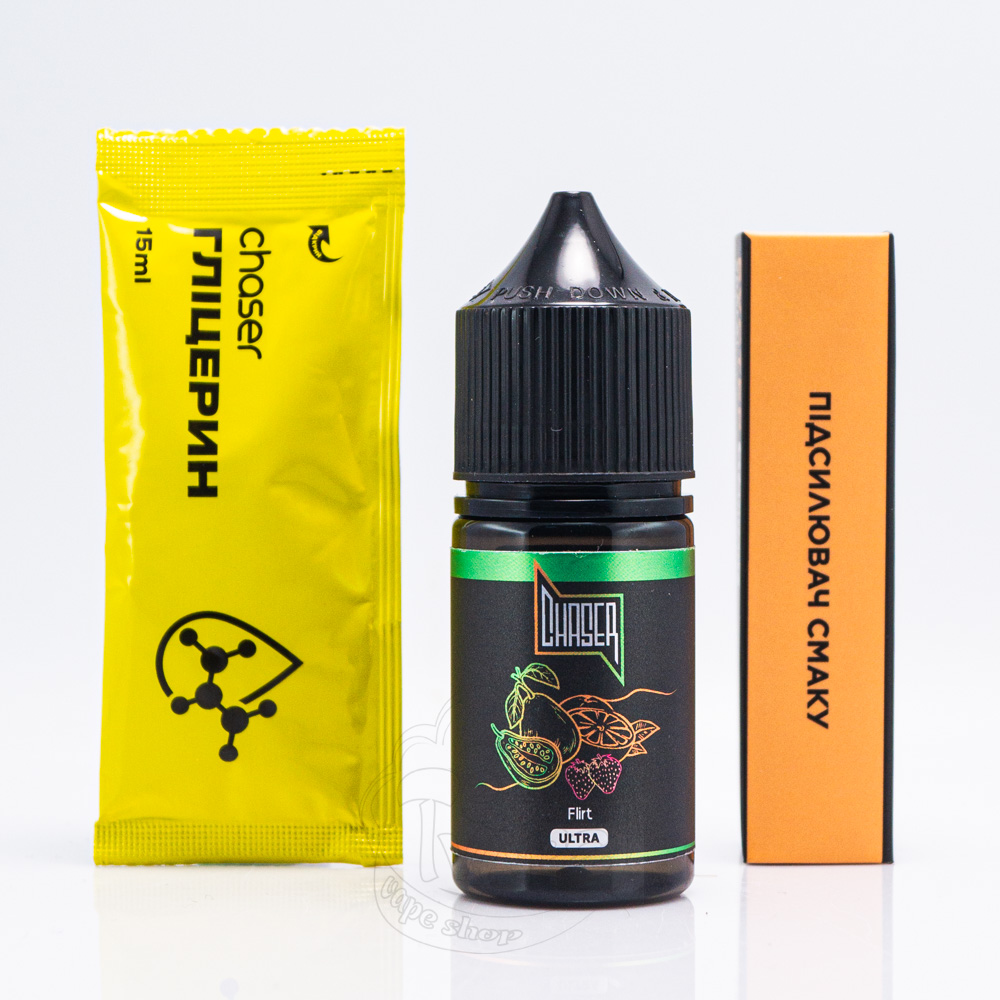 Chaser Black Ultra Salt Flirt 30ml 65mg - сольова рідина для електронних сигарет зі смаком фантастичного міксу солодкої гуави й апельсина з нотками полуниці на видиху.