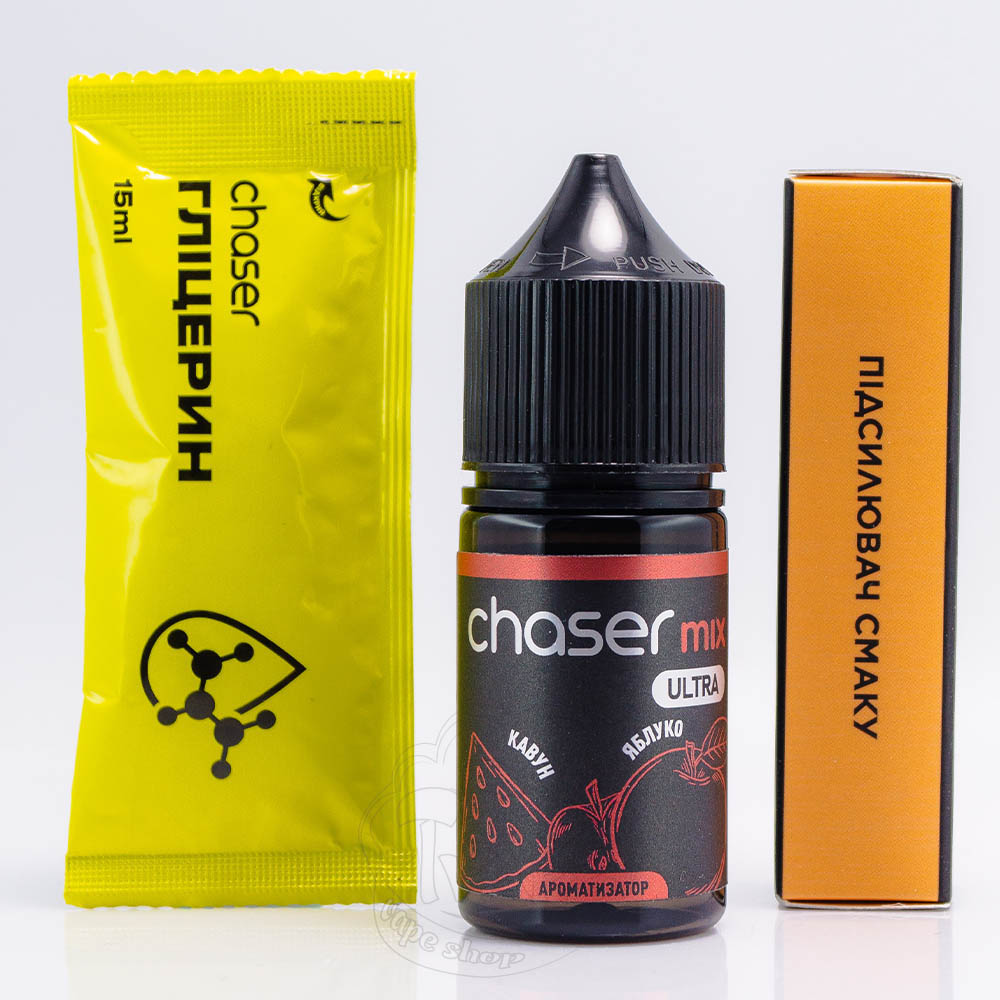 Chaser Mix Ultra Salt Арбуз Яблоко 30ml 50mg - это набор для самостоятельного приготовления солевой жижки со вкусом невероятно сочного арбуза и сладкого яблока, только что сорванного с дерева.