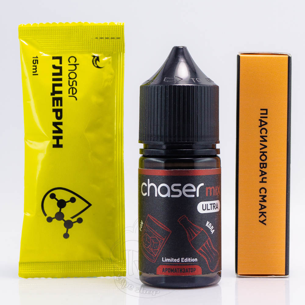 Chaser Mix Ultra Salt Ром Кола 30ml 50mg - это набор для самостоятельного приготовления жидкости со вкусом рома и колы.