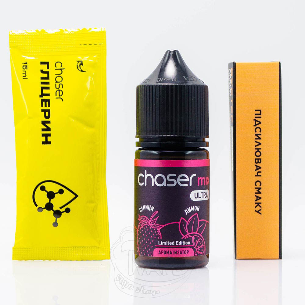 Chaser Mix Ultra Salt Земляника Лимон 30ml 65mg - это набор для самостоятельного приготовления жидкости со вкусом земляники и лимона.