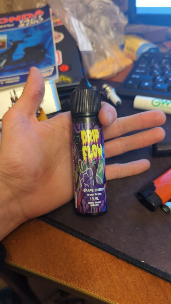 Эта линейка предлагает 10 вариантов, которые преимущественно несут в себе аромат кисло-сладких сочетаний. Также присутствуют вкусы, похожие на энергетические напитки, а также на прохладный чай. Фруктовые и ягодные миксы понравятся желающим «попробовать что-то вкусненькое», а также вполне вероятно пользователи смогут найти себе новые любимые ароматы. Флаконы привлекают внимание яркими цветами и интересным шрифтом названия линейки «Дрип Флоу». На каждой упаковке отображены вкусовые элементы, которые подсказывают вкус каждой опции.