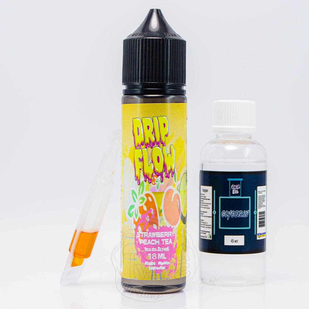Drip Flow Organic Strawberry Peach Tea 60ml 0mg - це набір для самостійного замішування жижки зі смаком літнього прохолодного чаю з солодкою полуницею та соковитим персиком.