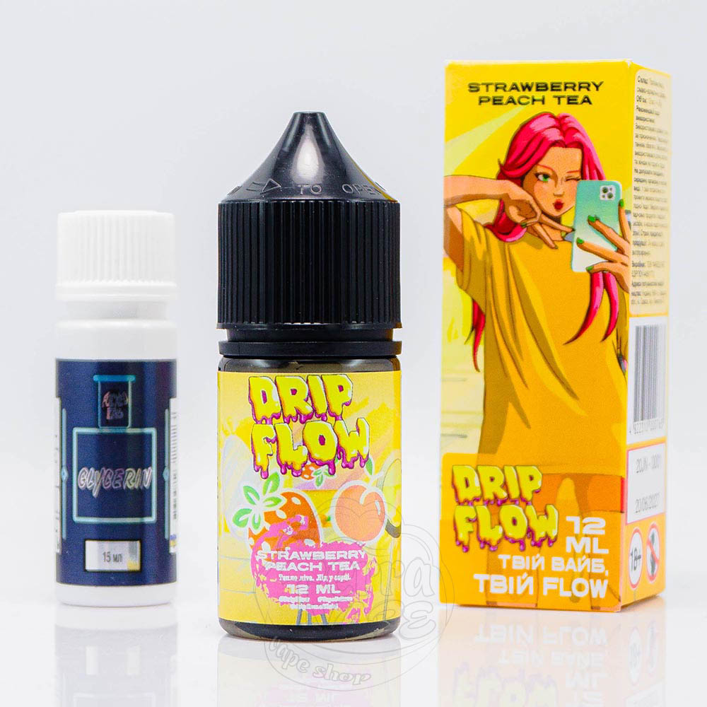 Drip Flow Salt Strawberry Peach Tea 30ml 50mg - це набір для приготування рідини зі смаком освіжаючого чаю, в якому фігурують ноти полуниці та персику.