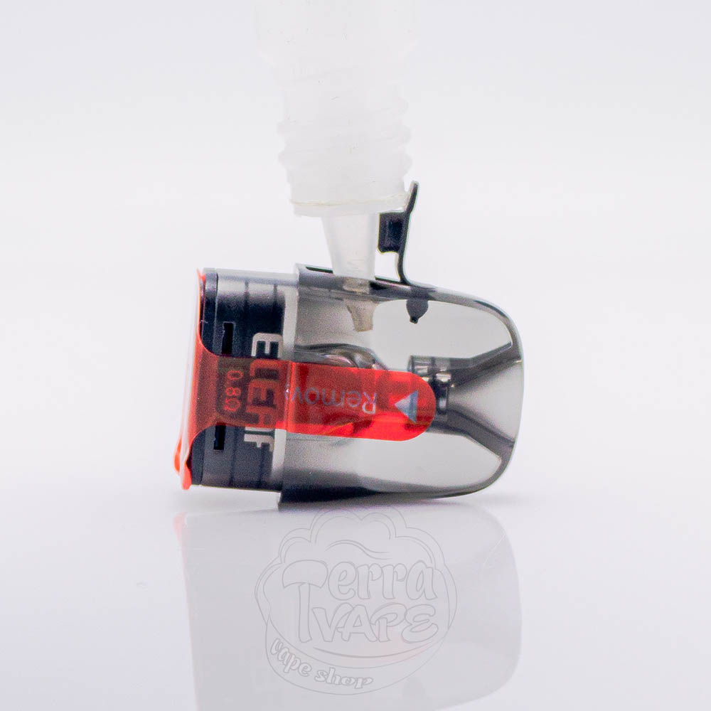 Устройство использует картриджи, которые способны вместить в себя до 2мл жидкости для парения. Испаритель в этих сменных элементах встроенный, поэтому вам не придется переживать за самостоятельное обслуживание расходников.