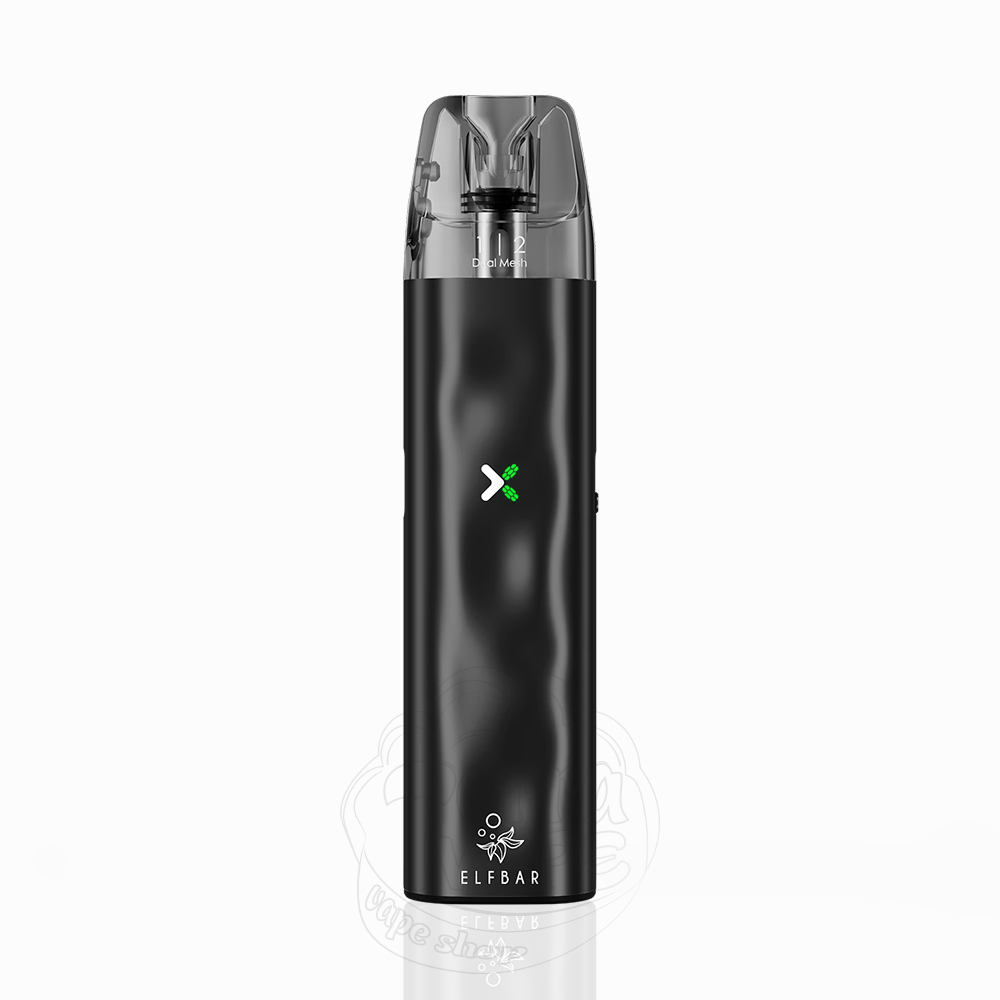 Elf Bar ELFX Mini Pod Kit 1000mAh Black - это мини версия линейки многоразовых POD-систем ELFX, черного цвета от популярного производителя Elf Bar. В корпусе, который имеет волнистую текстуру, встроен аккумулятор емкостью 1000mAh. Максимальная мощность, которую выдает электронная сигарета, составляет 30W. Устройство совместимо со всеми картриджами линейки ELFX, а комплектуется тем, который имеет нагревательный элемент сопротивлением 0.8Ом, объем 3мл, а также верхнюю заправку. Активация у девайса автоматическая, через затяжку, так как на корпусе совсем нет ни кнопок, ни дисплея, а только регулятор тугости затяжки, порт Type-C и световой индикатор заряда.
