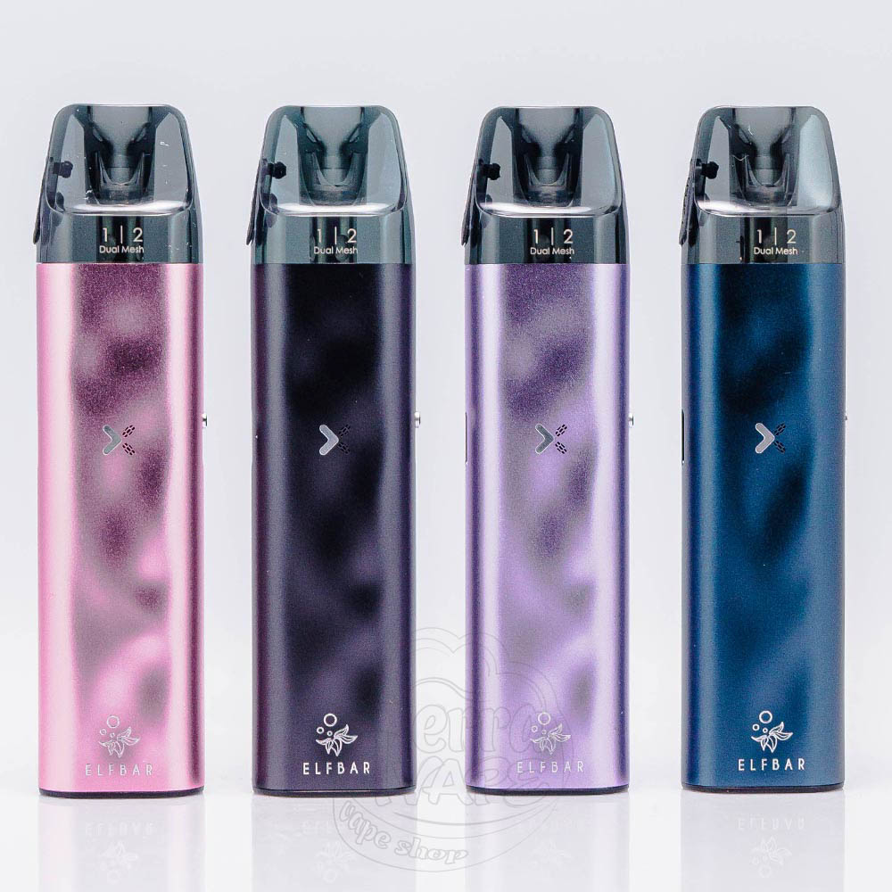 Elf Bar ELFX Mini Pod Kit 1000mAh - это мини версия линейки многоразовых POD-систем ELFX от популярного производителя Elf Bar. В корпусе, который имеет волнистую текстуру, встроен аккумулятор емкостью 1000mAh. Максимальная мощность, которую выдает электронная сигарета, составляет 30W. Устройство совместимо со всеми картриджами линейки ELFX, а комплектуется тем, который имеет нагревательный элемент сопротивлением 0.8Ом, объем 3мл, а также верхнюю заправку. Активация у девайса автоматическая, через затяжку, так как на корпусе совсем нет ни кнопок, ни дисплея, а только регулятор тугости затяжки, порт Type-C и световой индикатор заряда.