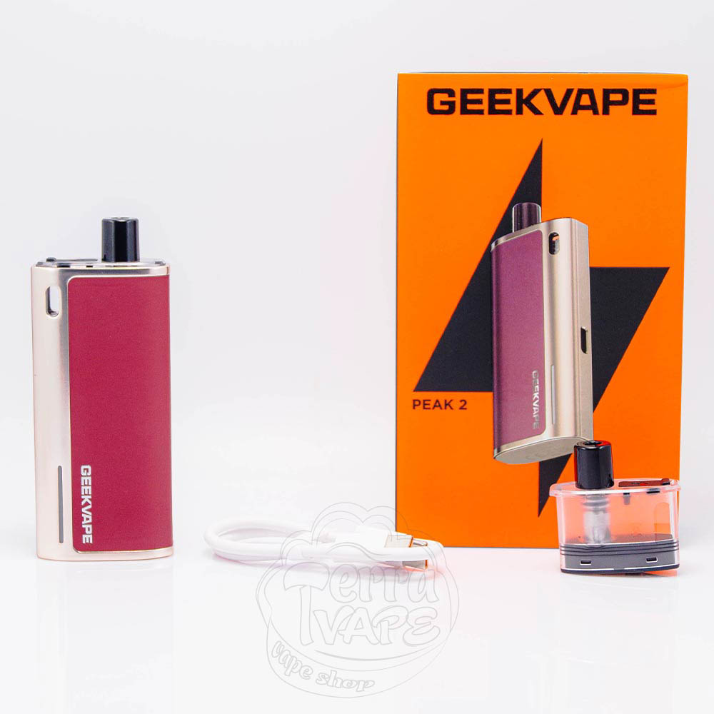 Geekvape Peak 2 Pod System Kit 1600mAh - это усовершенствованная, вторая версия многоразовой POD-системы Peak от известного производителя Geekvape. Длительную автономность устройства обеспечивает встроенная батарея емкостью 1600mAh, а также быстрая зарядка 5V/2A через порт Type-C. Максимальная мощность девайса составляет 20W. Устройство простое в использовании, так как не имеет ни кнопок, ни экрана.