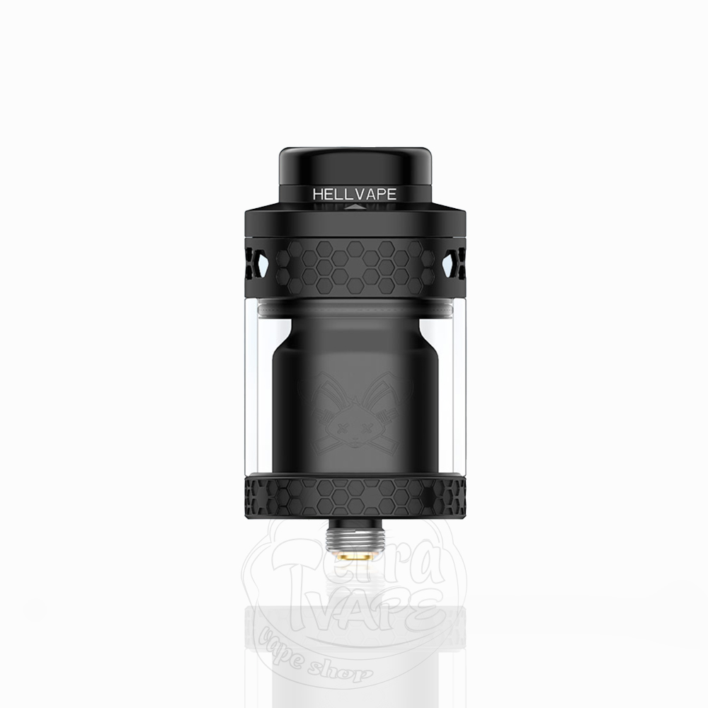 Hellvape Dead Rabbit 4 RTA Tank Atomizer Matte Full Black - це четверта версія Dead Rabbit RTA матового чорного кольору від популярного та надійного виробника Hellvape. Діаметр бази становить 26мм. Об'єм 3.5мл, а з бабл-склом - 5.5мл. Безстоєчна дека, ширина якої становить 13мм, розрахована на установку двох спіралей. Обдув верхній та регулюється завдяки рухомому кільцю. Отвір для заправки знаходиться зверху, а побачити його можна, здвинувши топ-кеп у напрямку стілки, що зображено біля 810 дріп-типу.