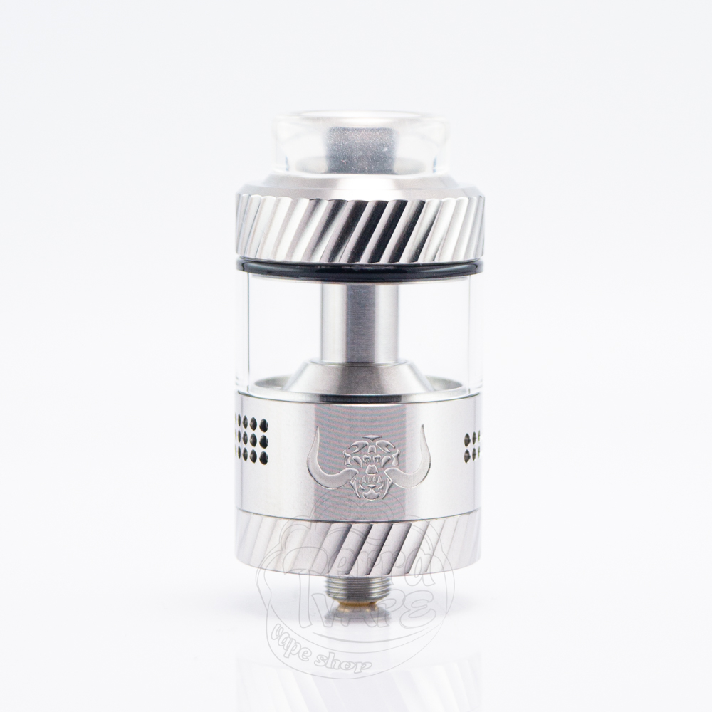 Центральная часть выполнена из прозрачного стекла, позволяющего удобно контролировать уровень жидкости. Обдув реализован через множество мелких отверстий, расположенных по обе стороны нижней части атомайзера. Это не только повышает эффективность охлаждения, но и визуально придаёт устройству характерный «звериный» облик.