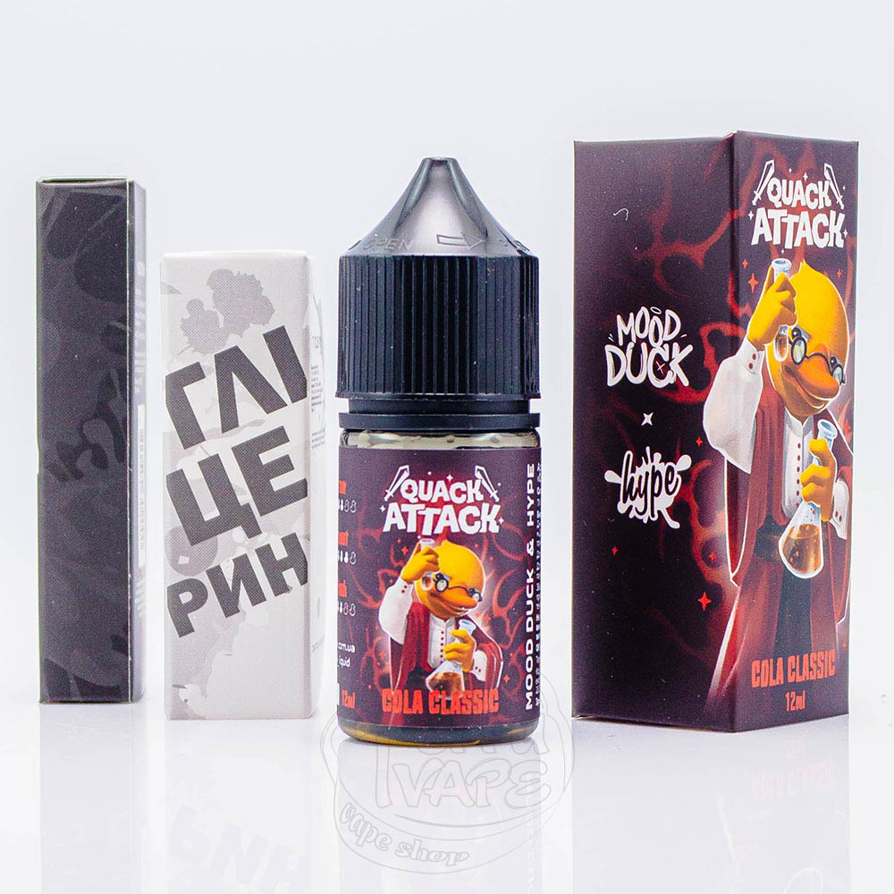 Hype x MoodDuck Quack Attack Salt Cola Classic 30ml 50mg - це складові для приготування рідини зі смаком всіма відомої класичної коли з солодкими та пряними нотками. Миттєва насолода та свіжість.