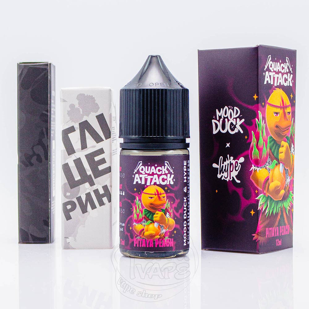 Hype x MoodDuck Quack Attack Salt Pitaya Peach 30ml 50mg - це компоненти для самозамісу рідини зі смаком ніжної екзотичної пітахаї та соковитого солодкого персику з легкою прохолодою.