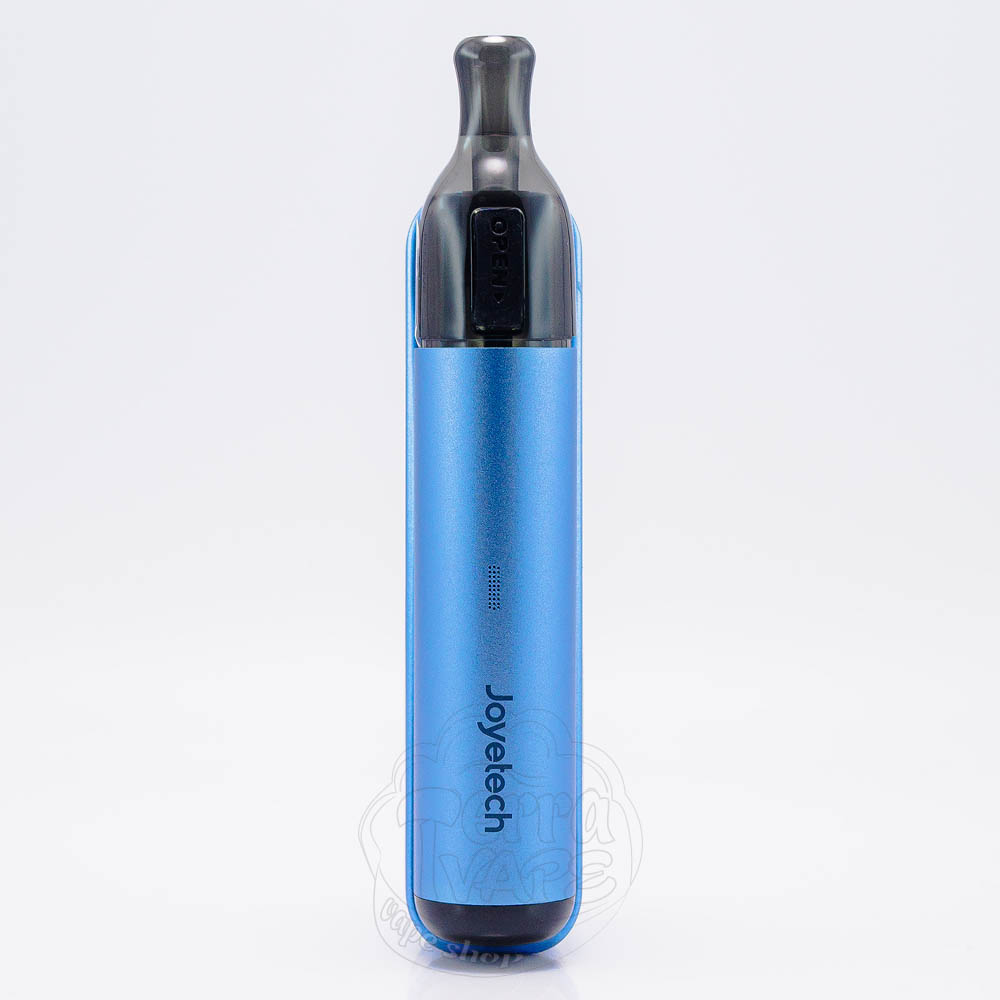 Под-система выполнена в миниатюрном цилиндрическом форм-факторе, и даже имеет соответствующий этому дизайну картридж с мундштуком округлой формы. На корпусе вы увидите логотип Joyetech, контакты для беспроводной зарядки и небольшой светодиодный индикатор состояния батареи.