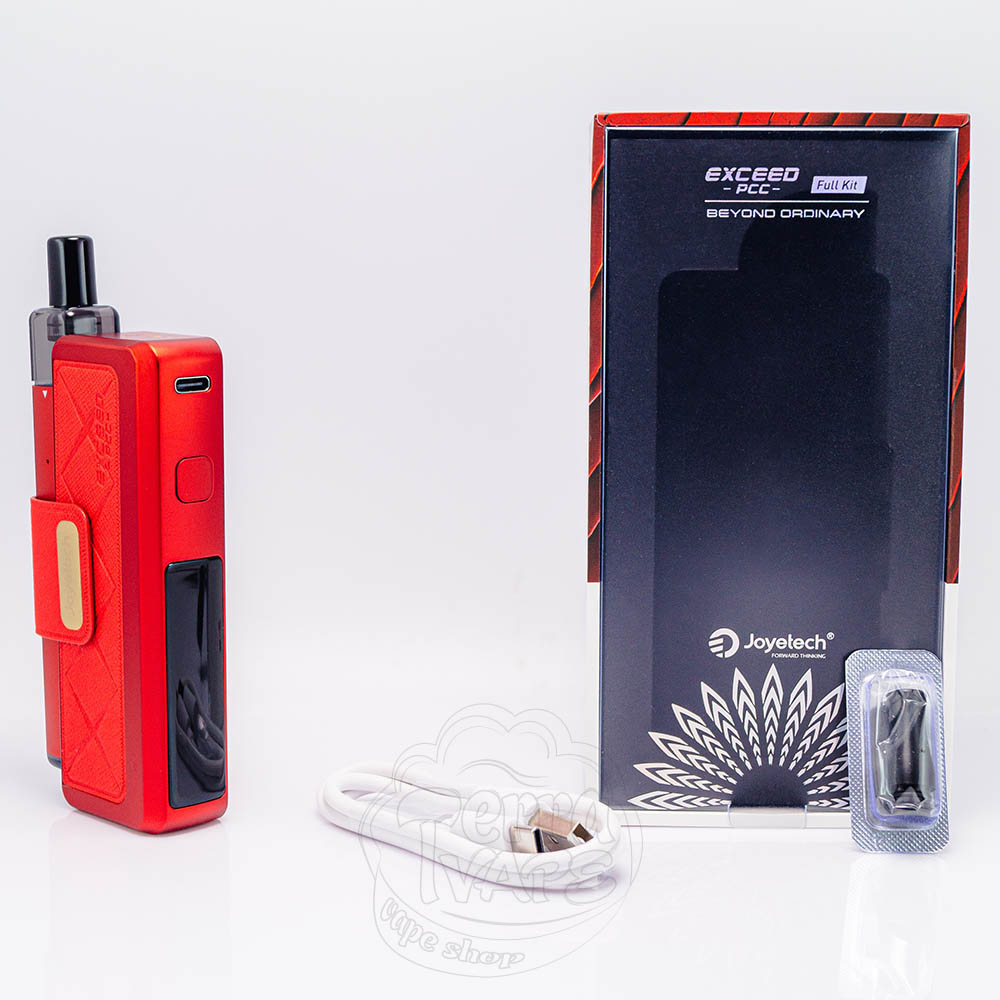 Под-система Exceed PCC однозначно вирізняється серед інших пристроїв завдяки своєму оригінальному формату - дуету лаконічної електронної сигарети у видовженому форм-факторі, та потужного зарядного футляра із яскравим кольоровим дисплеєм на бічній панелі. Електронка надійно кріпиться всередині футляра завдяки магнітному з'єднанню та зручній застібці, на якій зображено логотип Joyetech.