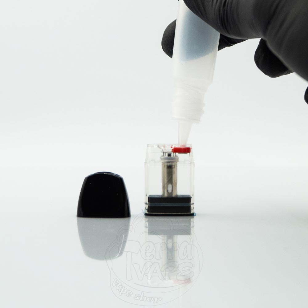 - Не забудьте просочити картридж/випарник під час першого використання, для цього залийте рідину всередину і почекайте 10-15 хвилин. Відразу після заправки також рекомендується потрясти картридж, щоб уникнути повітряної бульбашки, і зробити кілька холостих затяжок, щоб підтягнути рідину всередину до нагрівального елементу. Усі наступні заправки цього ж картриджа (випарника) не вимагають додаткового очікування або дій.