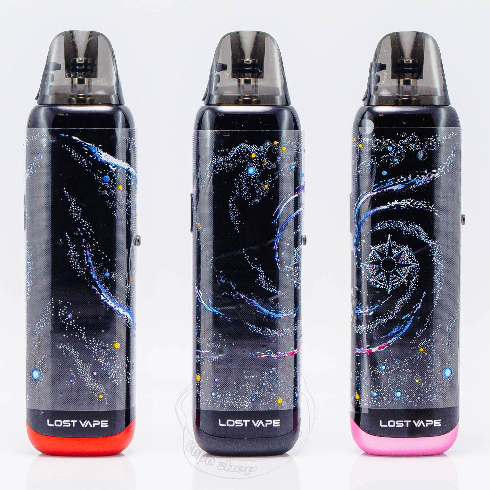 Lost Vape Galaxy T360 Pod System Kit 1200mAh - це багаторазова POD-система від досить відомої на вейп-ринку компанії Lost Vape. Містить в собі вбудований акумулятор ємністю 1200mAh та заряджається від порту Type-C, а також підтримує швидку зарядку 5V/2A. Максимальна вихідна потужність складає 35W. Девайс сам підлаштовує сумісний ватаж під опір картриджу, який використовується. На корпусі є слайдер - регулятор тугості затяжки. Пристрій сумісний з усіма картриджами лінійки Урса, а попередньо вбудований - Ursa V3 з нагрівальним елементом опором 0.8Ом та об'ємом 2.5мл, з верхньою заправкою. Активація автоматична - через затяжку.