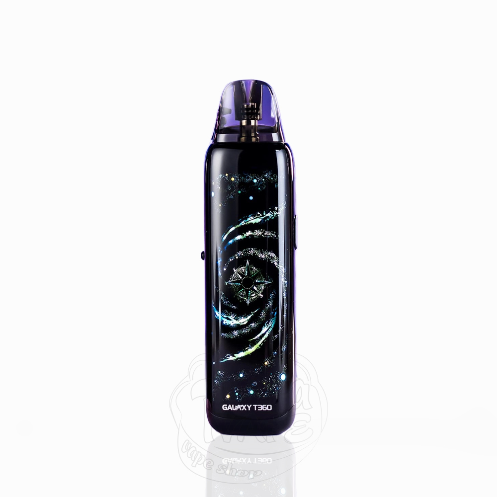Lost Vape Galaxy T360 Pod System Kit 1200mAh Ocean Galaxy - це багаторазова POD-система чорного кольору з блакитними світодіодами, від досить відомої на вейп-ринку компанії Lost Vape. Містить в собі вбудований акумулятор ємністю 1200mAh та заряджається від порту Type-C, а також підтримує швидку зарядку 5V/2A. Максимальна вихідна потужність складає 35W. Девайс сам підлаштовує сумісний ватаж під опір картриджу, який використовується. На корпусі є слайдер - регулятор тугості затяжки. Пристрій сумісний з усіма картриджами лінійки Урса, а попередньо вбудований - Ursa V3 з нагрівальним елементом опором 0.8Ом та об'ємом 2.5мл, з верхньою заправкою. Активація автоматична - через затяжку.