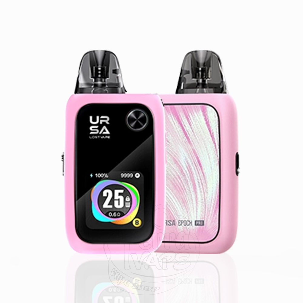 Lost Vape Ursa Epoch Pro Pod System Kit 1400mAh Silk Rose - это обновленная версия известного устройства Ursa Epoch, розового цвета от компании Lost Vape. POD-система имеет встроенный аккумулятор емкостью 1400mAh. Поддерживает быструю зарядку и заряжается от порта Type-C. Максимальная мощность составляет 35W. В комплекте идет с картриджем Ursa V3 объемом 2.5 мл и сопротивлением 0.8Ом. Совместим со всеми картриджами серии Урса. Активация возможна как от затяжки, так и от кнопки. Тугость затяжки регулируется небольшим слайдером. Девайс имеет цветной дисплей 1.3″ TFT, на котором отображаются все параметры устройства. Управление и изменение настроек происходит с помощью кнопки активации и кнопок «+» / «-».
