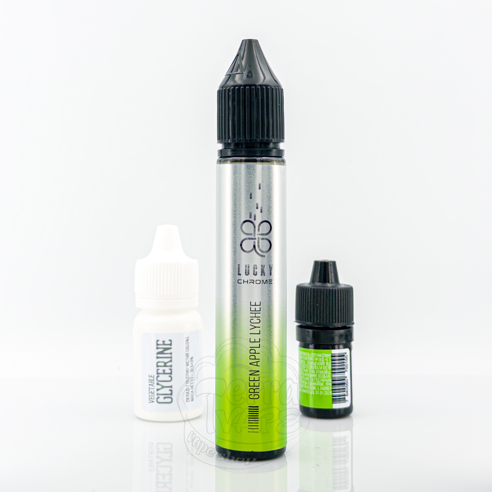 Lucky Chrome Salt Green Apple Lychee 30ml 50mg - это набор для самостоятельного замешивания жидкости с прохладным вкусом кисло-сладкого сочетания зеленого хрустящего яблока и экзотического личи.