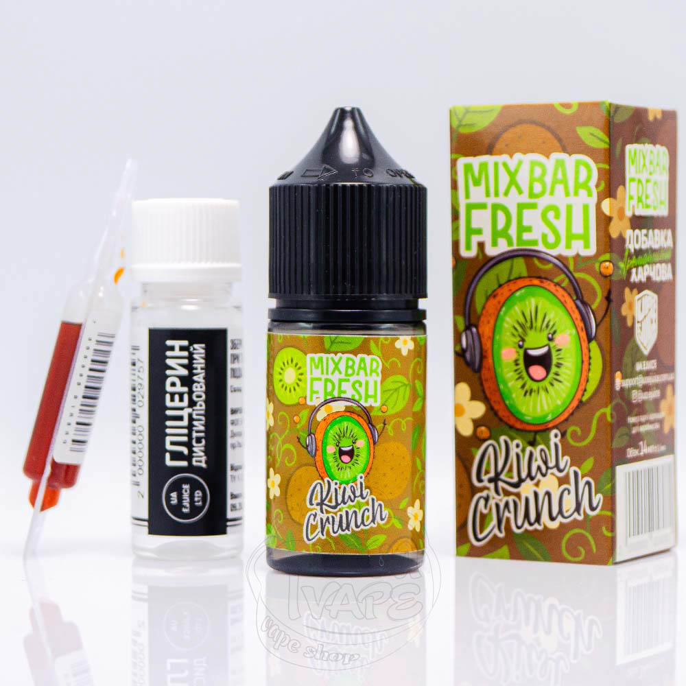 Mix Bar Fresh Salt Kiwi Crunch 30ml 50mg - це набір для самостійного приготування рідини зі смаком ківі та яблука, які у поєднанні створюють кисло-солодкий мікс. Цей смак освіжає та залишає після себе яскраву та приємну кислинку.