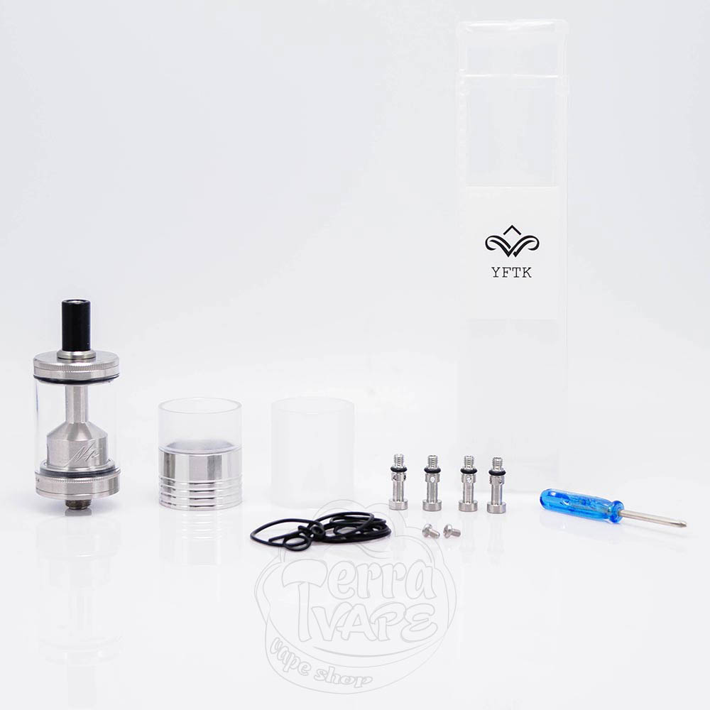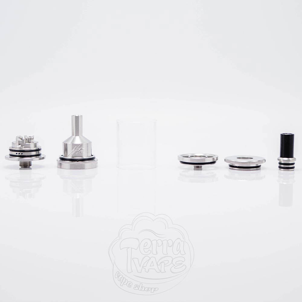 NETSU MTL RTA - це клон бака, що обслуговується, MTL-версії лінійки NETSU. Діаметр бази складає 22мм та передбачає установку одного нагрівального елементу. Резервуар вміщає в себе до 5мл рідини, а заправка у бака верхня, що є дуже зручним фактором. Обдув нижній, а регулюється завдяки жиклерам, які йдуть в наборі з атомайзером.