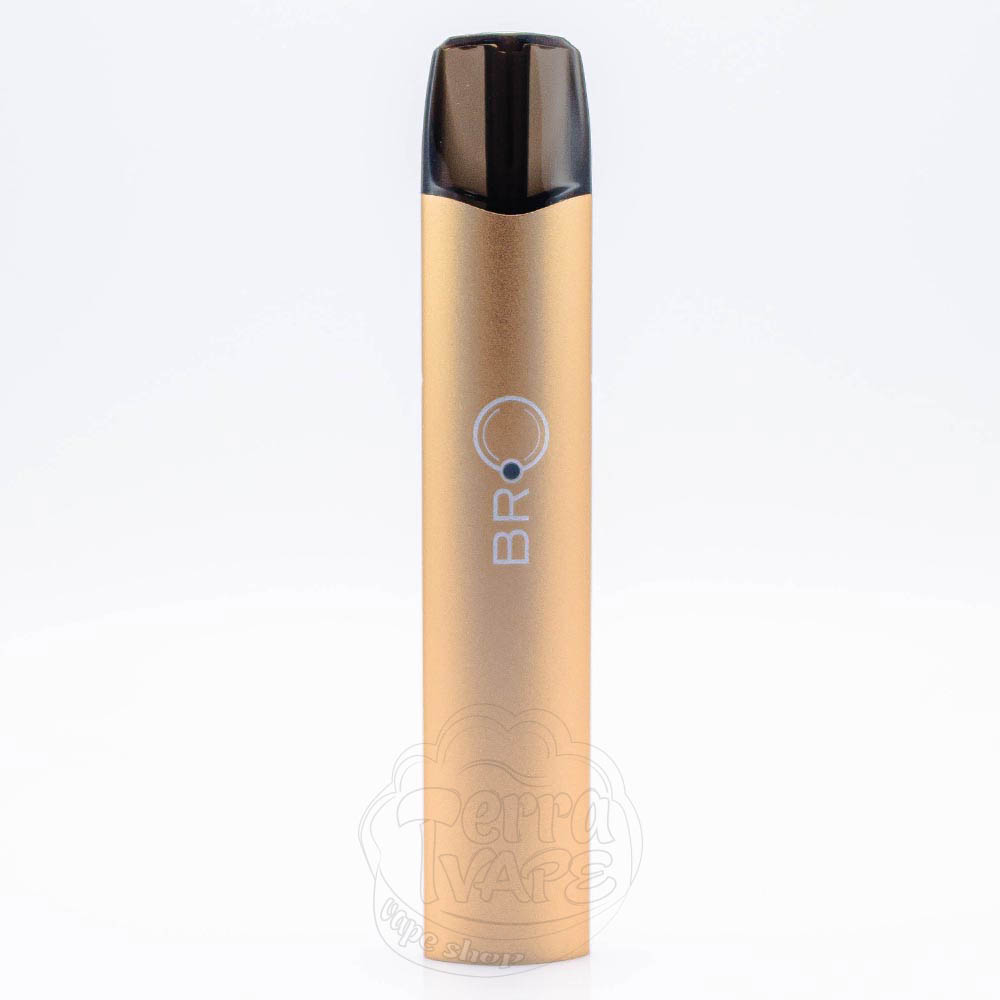 Устройство выглядит очень просто и минималистично, а его компактные размеры и небольшой вес позволяют носить его с собой повсюду. На корпусе изображено название устройства - «BRO». На дне под-системы находится порт micro-USB, через который она заряжается. На монотонной поверхности отсутствуют кнопки и дисплей. На букве "О", в названии, находиться маленькая лампочка, которая может намекать про состояние устройства. На корпусе находится маленькое отверстие для обдува, его регулировка не предусмотрена. Картридж полупрозрачный, однако следить за уровнем жидкости в резервуаре не составляет труда.