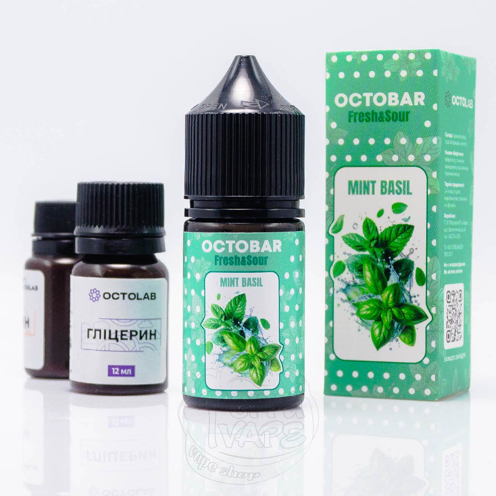 Octobar Fresh&Sour Salt Mint Basil 30ml 50mg - це комплект для самостійного приготування рідини зі смаком м'яти та бизиліку.