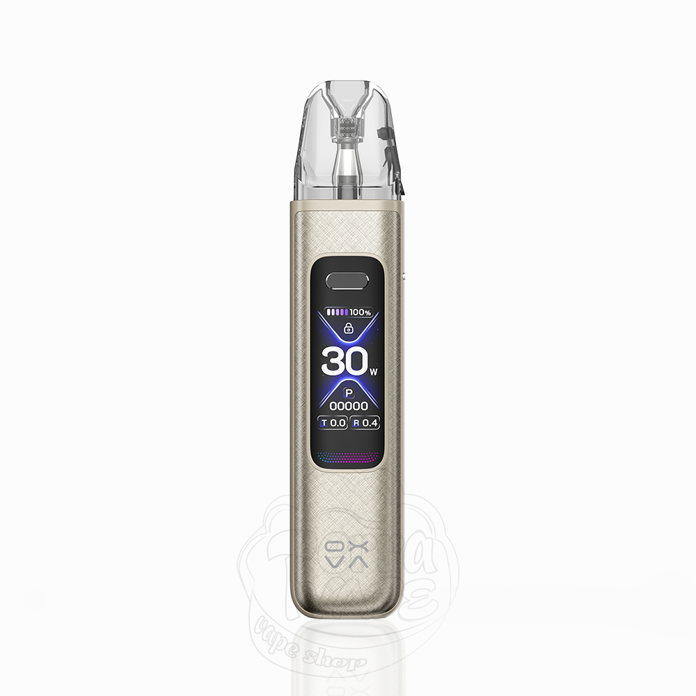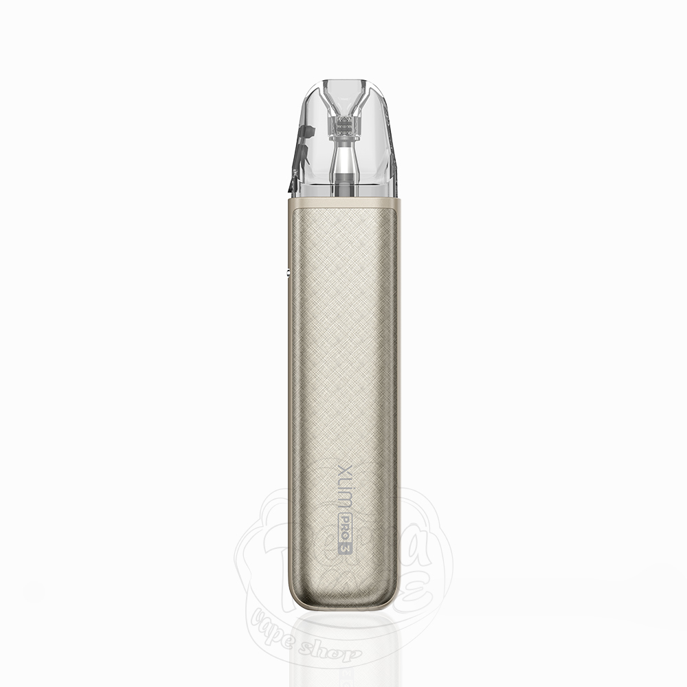 OXVA XLIM PRO 3 Pod Kit 1500mAh Titanium Silk - это третья Pro-версия популярной линейки Xlim, золотистого цвета от компании OXVA. Работает от встроенного аккумулятора, емкость которого составляет 1500mAh. Поддерживает быструю зарядку 5V/2A от порта Type-C. Диапазон выходной мощности - от 5 до 30W. На корпусе расположен 1.05'' дисплей, на котором отображается вся информация об устройстве, а через кнопку над ним происходит все управление.