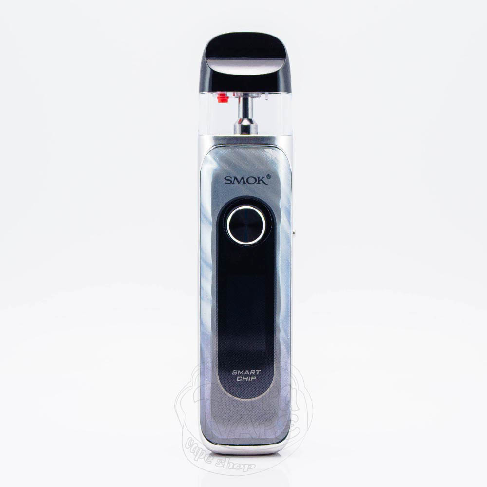 Smok Novo 6 Pod System Kit 1700mAh Silver - це багаторазова под-система сріблястого кольору, шосте покоління лінійки Novo від відомого виробника Smok, яке вирізняється своїми осучасненими характеристиками. Працює від вбудованого акумулятора, ємність якого складає 1700mAh та з максимальною вихідною потужністю 40W. Підтримує швидку зарядку 5V/2A від кабелю Type-C, з яким комплектується пристрій. У набір входить два картриджа об'ємом по 3мл та вбудованими випарниками з опором 0.6Ом. Заправка верхня, активація автоматична. Затяжку з легкістю можна регулювати завдяки слайдеру. Корпус оснащений кольоровим 0.96`` TFT дисплеєм, на якому відображаються всі налаштування пристрою, а управляти ними легко та інтуїтивно завдяки кнопці, яка знаходиться прямо над екраном.