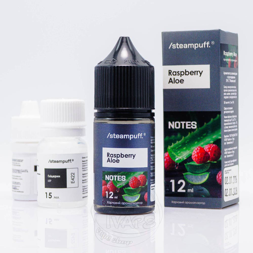 Steampuff Notes Salt Raspberry Aloe 30ml 50mg - це набір для замішування рідини зі смаком гармонійного поєднання трав'янистого алое та кислуватої малини.