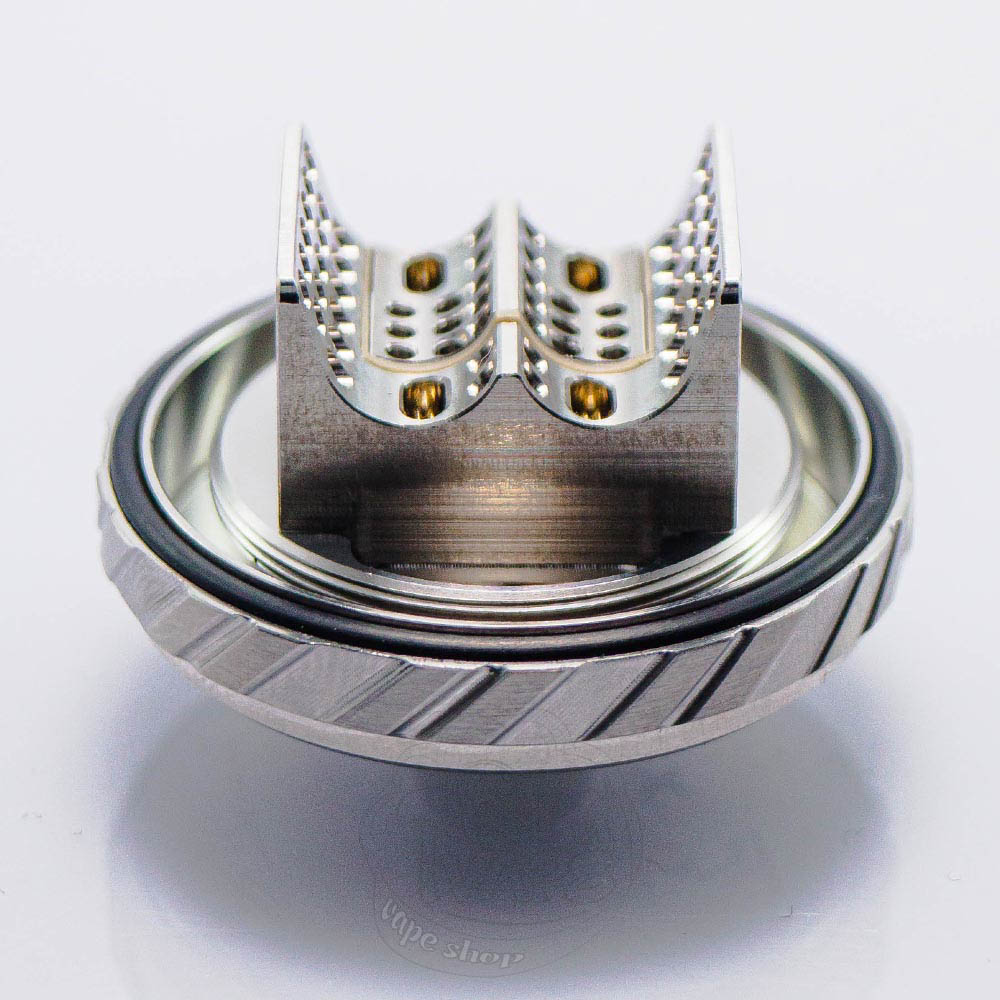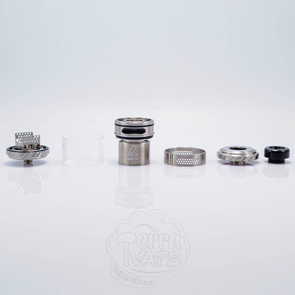 Бак виготовлений з нержавіючої сталі зі стриманим, але впізнаваним дизайном. Атомайзер має великі габарити: видима висота разом з комплектним дріп-типом становить 45.5мм, а діаметр в найширшій частині - 30мм (з прямим склом) або 35мм (з бабл-склом).