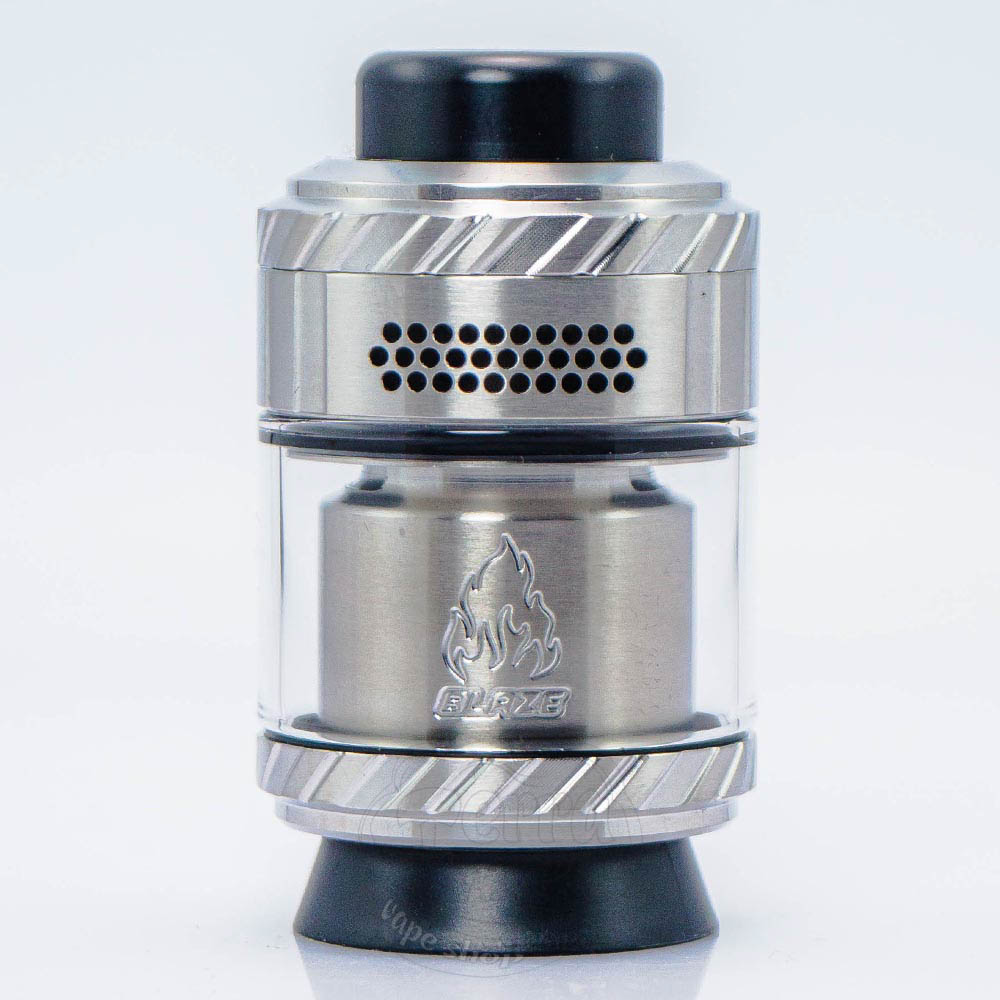 Thunder Cloud Blaze Pro Max RTA Atomizer SS - це Pro-версія популярної моделі обслуговуваного бака Blaze MAX RTA, сріблястого кольору, від спеціального підрозділу компанії THC - Thunder Cloud. Дизайн і функціонал, як і в попередній моделі, був розроблений у співпраці з відомим американським вейп-оглядачем - Mike Vapes. Діаметр бази складає 28мм. Об'єм стандартного резервуара - 5.5мл, а з бабл-склом - 8.5мл. Заправка у бака верхня. Дріп-тип 810.