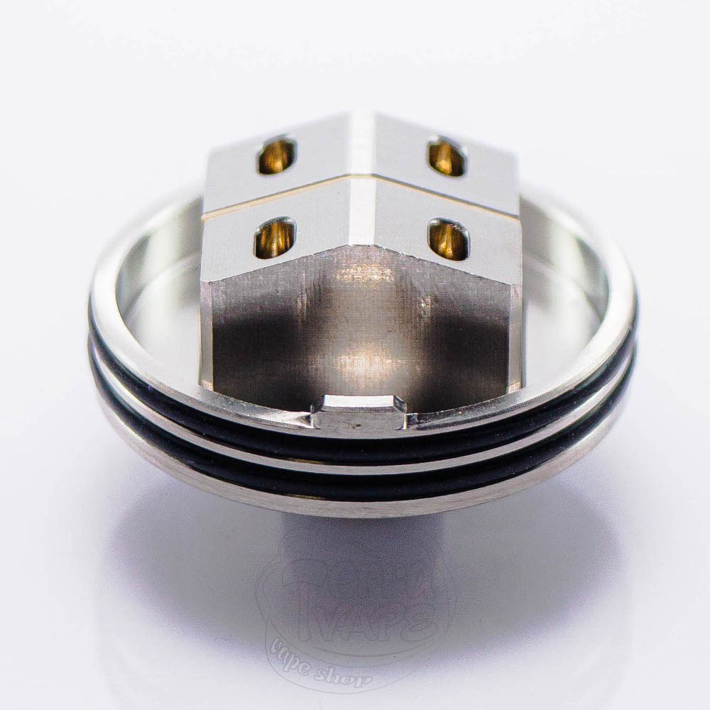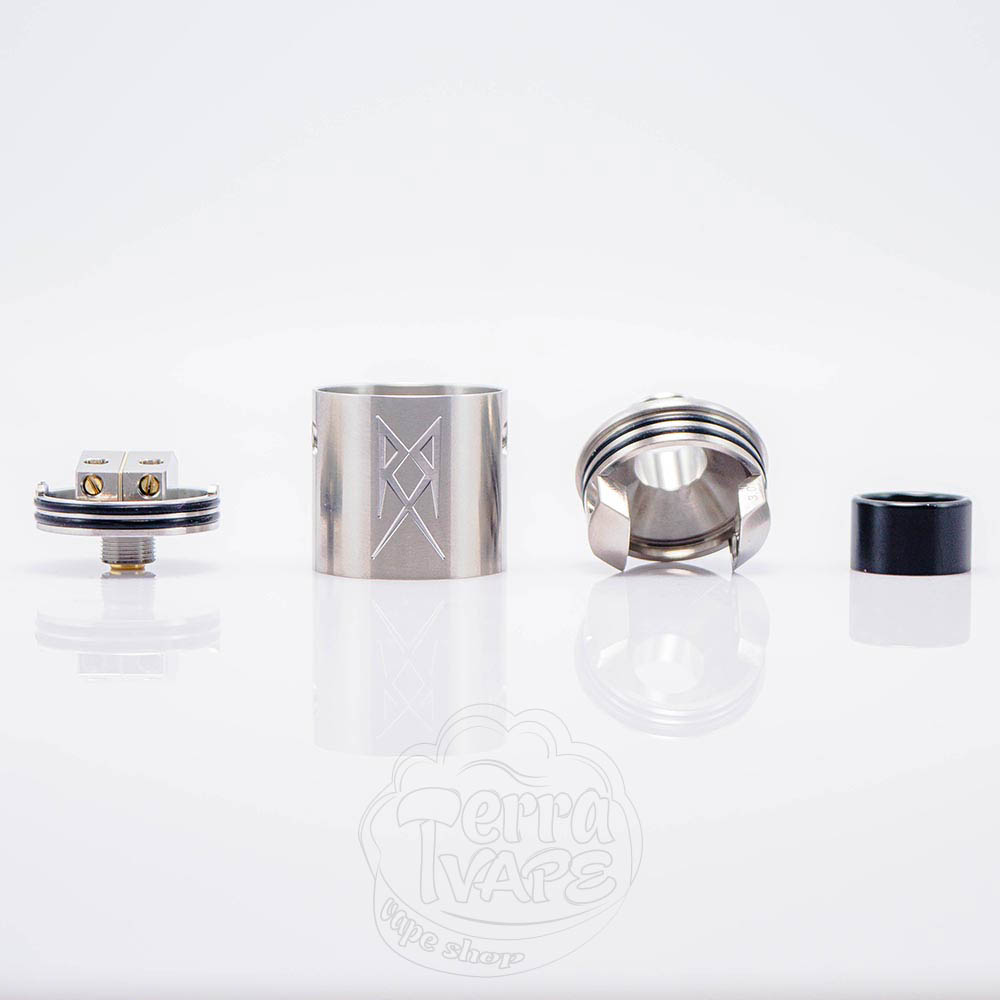 Потік повітря регулюється за допомогою двох сталевих вставок, які потрібно змінювати вручну, вкручуючи одну з них у топ-кеп. У них відрізняються діаметри отворів - 2.5мм і 3мм. Ці опції дають користувачам можливість обирати між двома варіантами щільності затяжки.