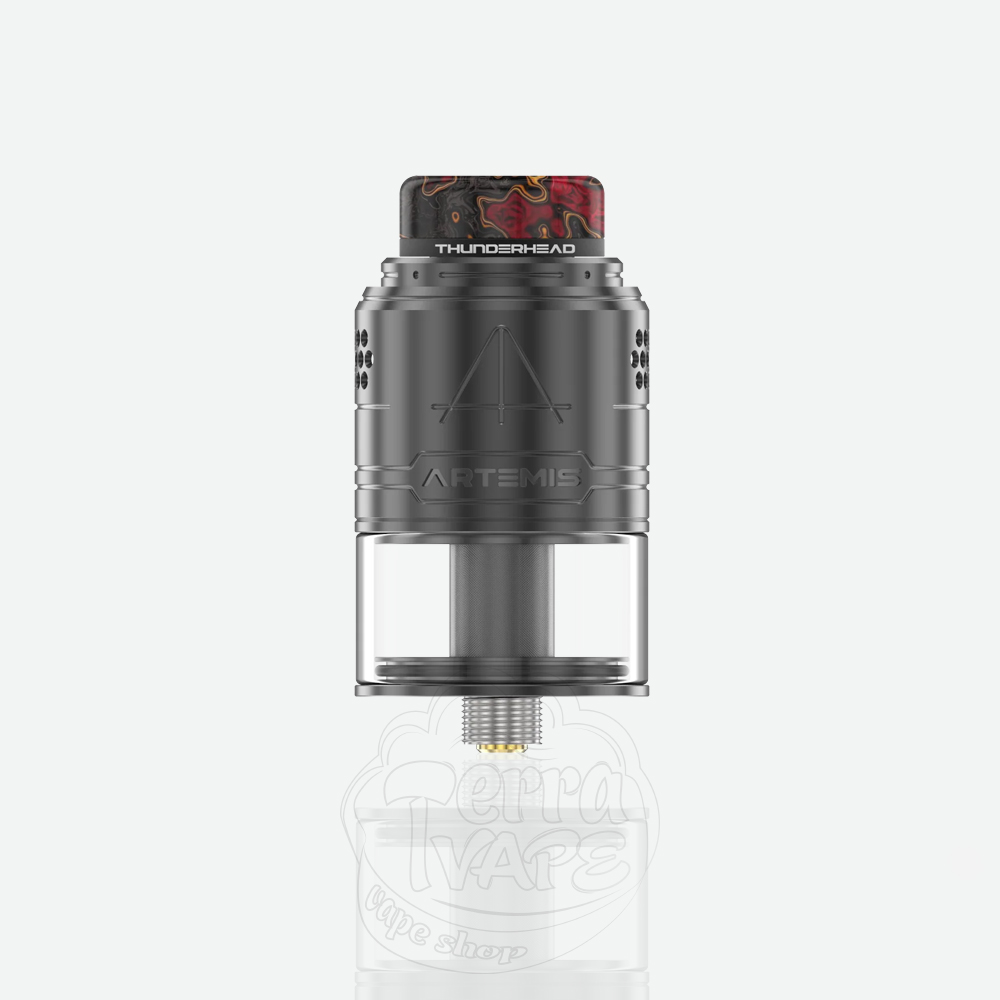 ThunderHead Creations Artemis 2 RDTA Gunmetal – це друга версія двоспіральної бако-дріпки Artemis, сірого кольору від компанії THC у колаборації з TNYVPS. Діаметр 25мм, а об'єм – 4.5мл. Вгорі розташувався безо-ринговий 810 дріп-тип. Обдув регульований, бічний. Основною перевагою цього атомайзера є простота збирання завдяки інноваційній системі затискачів спіралі за допомогою одного гвинта. Таким чином Artemis 2 чудово підійде для новачків у світі ребілдингу.