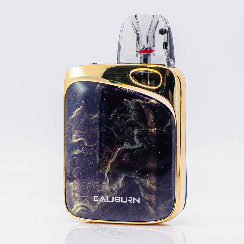 Картриджи, с которыми комплектуется девайс, имеют объем 3мл, нагревательный элемент сопротивлением 0.6Ом и 0.4Ом, а также удобную верхнюю заправку. Устройство совместимо со всеми сменными картриджами линейки Caliburn. Активация автоматическая, затяжкой, а ее плотность можно легко регулировать с помощью слайдера. Все управление POD-системой происходит через встроенный сенсорный дисплей.