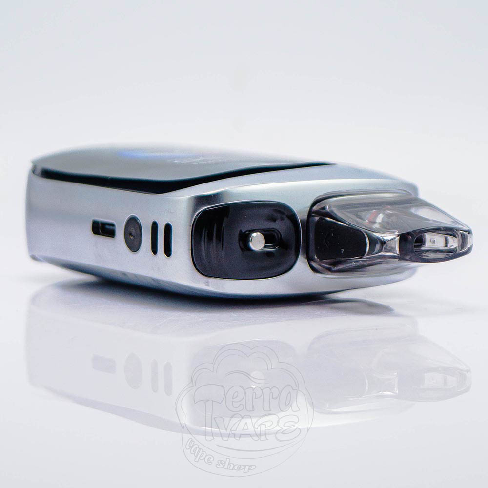 POD-система имеет квадратную, достаточно компактную форму — ее размеры составляют 85.8х50х23 мм. Материалы изготовления включают алюминиевый сплав и PCTG-пластик, которые обеспечивают высокую ударопрочность.