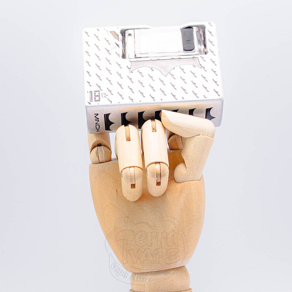 MNCH XR-80 DNA80c - компактное устройство, размеры которого составляют 64.4х47х26мм. Он комфортно лежит в руке, а удобное расположение кнопки позволяют с легкостью активировать затяжки. На одной из сторон алюминиевого корпуса находится порт Type-C, а на дне расположен цветной 0.85" TFT дисплей, тему которого можно изменить в настройках или добавить свою благодаря возможности кастомизации ХР-80 через ПО EScribe.