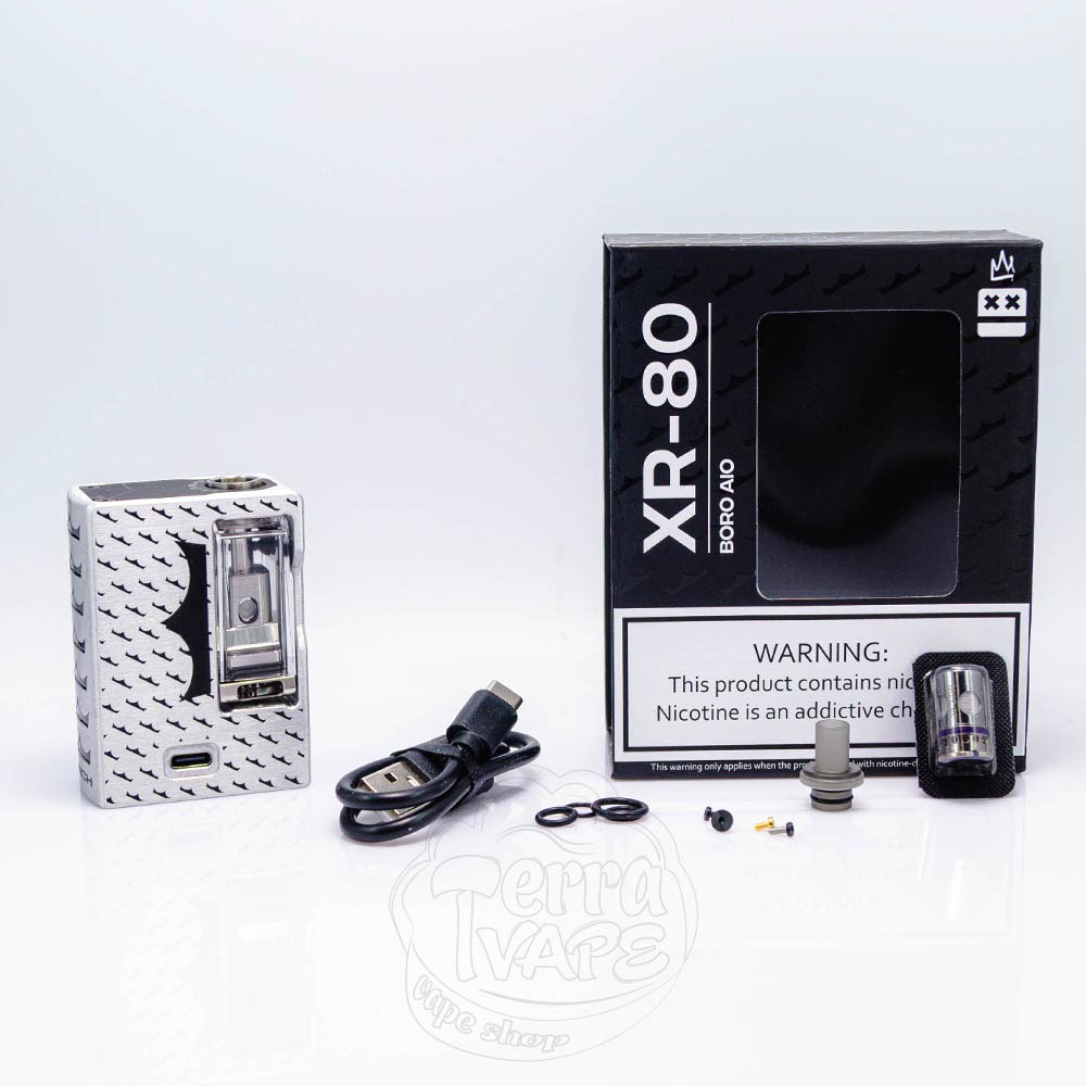 Vaperz Cloud X MNCH XR-80 DNA80c Boro Kit Raw Silver - это AIO боро-устройство черно-серебристого цвета на чипсете DNA80c от компании Vaperz Cloud в коллаборации с польским производителем Monarchy. В себе содержит встроенный аккумулятор емкостью 3000mAh и заряжается через порт Type-C. Максимальная мощность составляет 80W. Устройство оснащено цветным 0.85-дюймовым TFT дисплеем и совместимо с настройкой через программное обеспечение EScribe от Evolv.