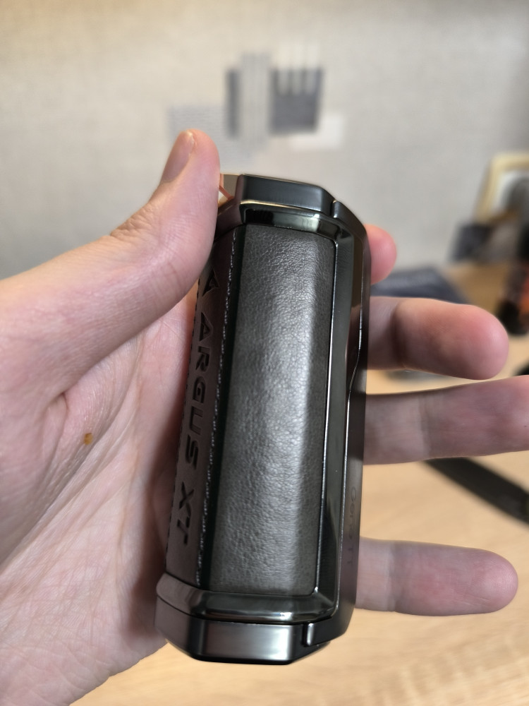 Argus XT з регульованою потужністю від 5 до 100W покритий бронею з цинкового сплаву і великою шкіряною спинкою. Продумане поєднання елегантності та міцності! Хоча він дуже схожий на свого брата-близнюка (Argus MT), цей бокс для одного акумулятора підкреслює свою індивідуальність завдяки назві, вигравіруваній на його корпусі. Гачок, вбудований у верхню частину, дає змогу носити його на шиї, використовуючи відповідний ремінець (не входить до комплекту).