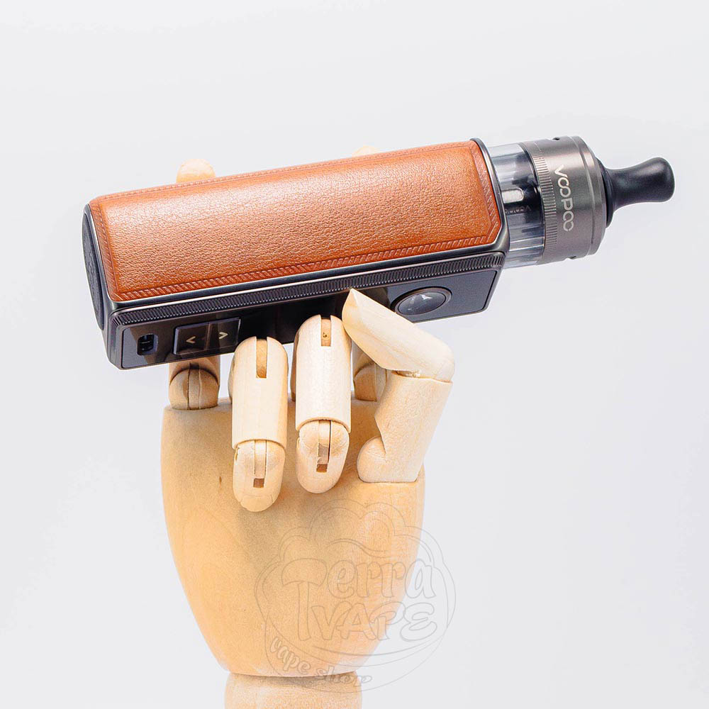 Voopoo Drag S3 60W Pod Mod Kit 3000mAh Brown - це под-мод третього покоління лінійки Drag S, коричневого кольору від виробника Voopoo. Працює від вбудованого акумулятора ємністю 3000mAh та заряджається через кабель Type-C, який йде в комплекті з пристроєм. Максимальна вихідна потужність складає 60W. Її можна налаштувати самостійно, або ж пристрій може підібрати ватаж під опір встановленого нагрівального елементу автоматично, завдяки режиму "Smart".