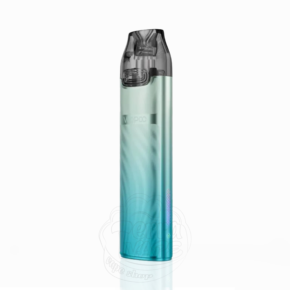 VOOPOO VMATE i3 Pod System Kit 1500mAh Cyan Blue - это следующая, третья, версия многоразовой POD-системы линейки «Vmate i», цвета бирюзово-голубого градиента от компании VOOPOO. Работает от встроенной батареи, емкость которой составляет 1500mAh и поддерживает быструю зарядку 5V/2A от порта Type-C. Максимальная выходная мощность достигает 30W. Устройство совместимо со всеми картриджами серии Vmate, а тот, который идет вместе с девайсом, имеет объем 3мл и сопротивление нагревательного элемента 0.7Ом. Заправка у него верхняя, а активируется затяжка автоматически. Регулировка тугости затяжки с легкостью происходит благодаря слайдеру.