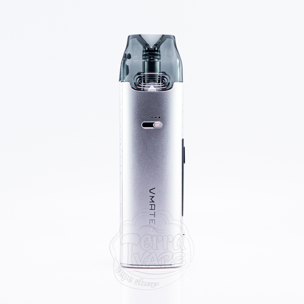 Voopoo Vmate Pro 2 Pod System Kit 1500mAh Glacier Silver - це друга версія популярної pod-системи Vmate Pro, сріблястого кольору, продовження лінійки серії Vmate, від компанії Voopoo. Працює від збільшеного вбудованого акумулятора ємністю 1500мАч. Активується від затяжки. Має два режими роботи (Power / Eco) і може видавати потужність до 30Вт. Присутнє регулювання тугості затяжки. Комплектується двома картриджами з різним опором, об'єм яких становить до 3мл рідини.